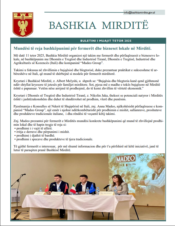 Buletini i Muajit Tetor 2025 Home / Mirë Se Vini Në Faqen Zyrtare të Bashkisë Mirditë / Buletini i Muajit Tetor 2025