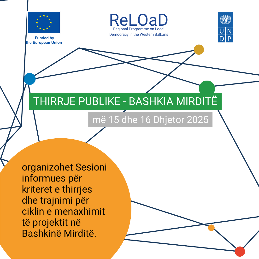 Bashkia Mirditë, në bashkëpunim me programin ReLOaD3 në Shqipëri, ka shpallur më 5 Dhjetor 2025 Thirrjen e Parë Publike për Organizatat e Shoqërisë Civile, e cila është e hapur deri më 20 Janar 2026.